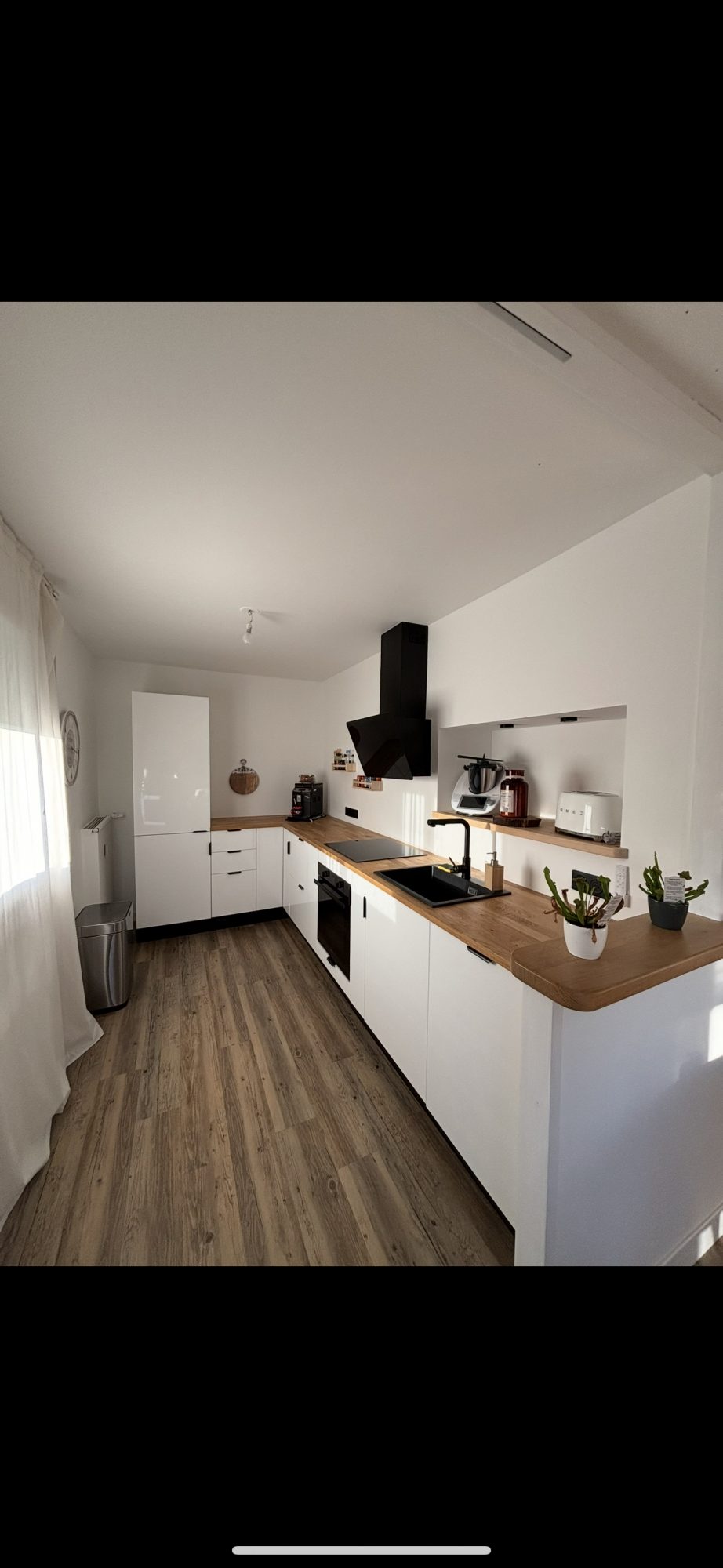 une cuisine aménagée ouverte sur séjour-salon, un cellier buanderie, une chambre, une autre pièce à usage de bureau-dressing, une salle d'eau, wc, placard.