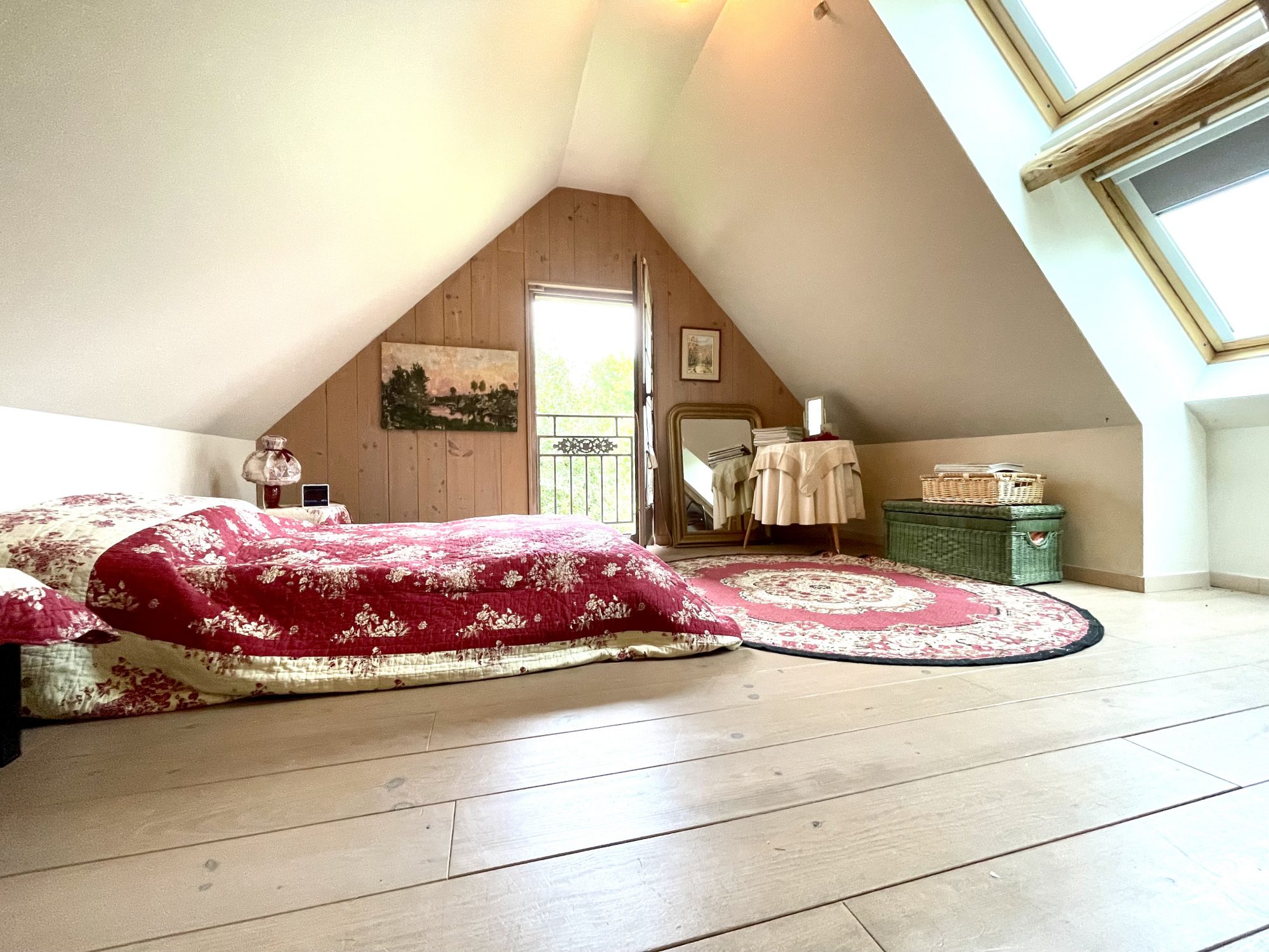 L'étage est desservi par deux escaliers et comprend une chambre avec dressing , un grenier aménagé et une espace aménageable de 40 m².