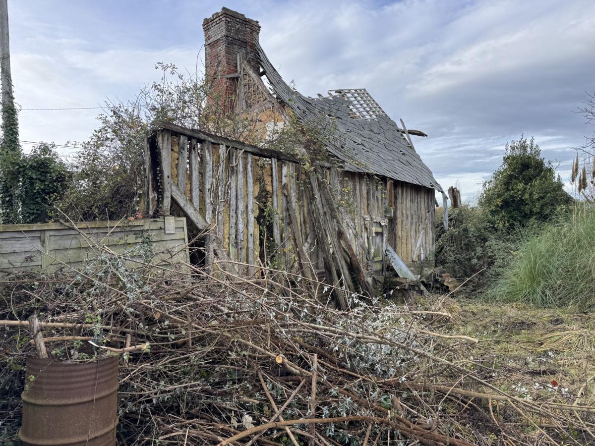 Maison à colombage à restaurer d'environ 150m² (assainissement collectif) + Bungalow + petit bâtiment en ruine