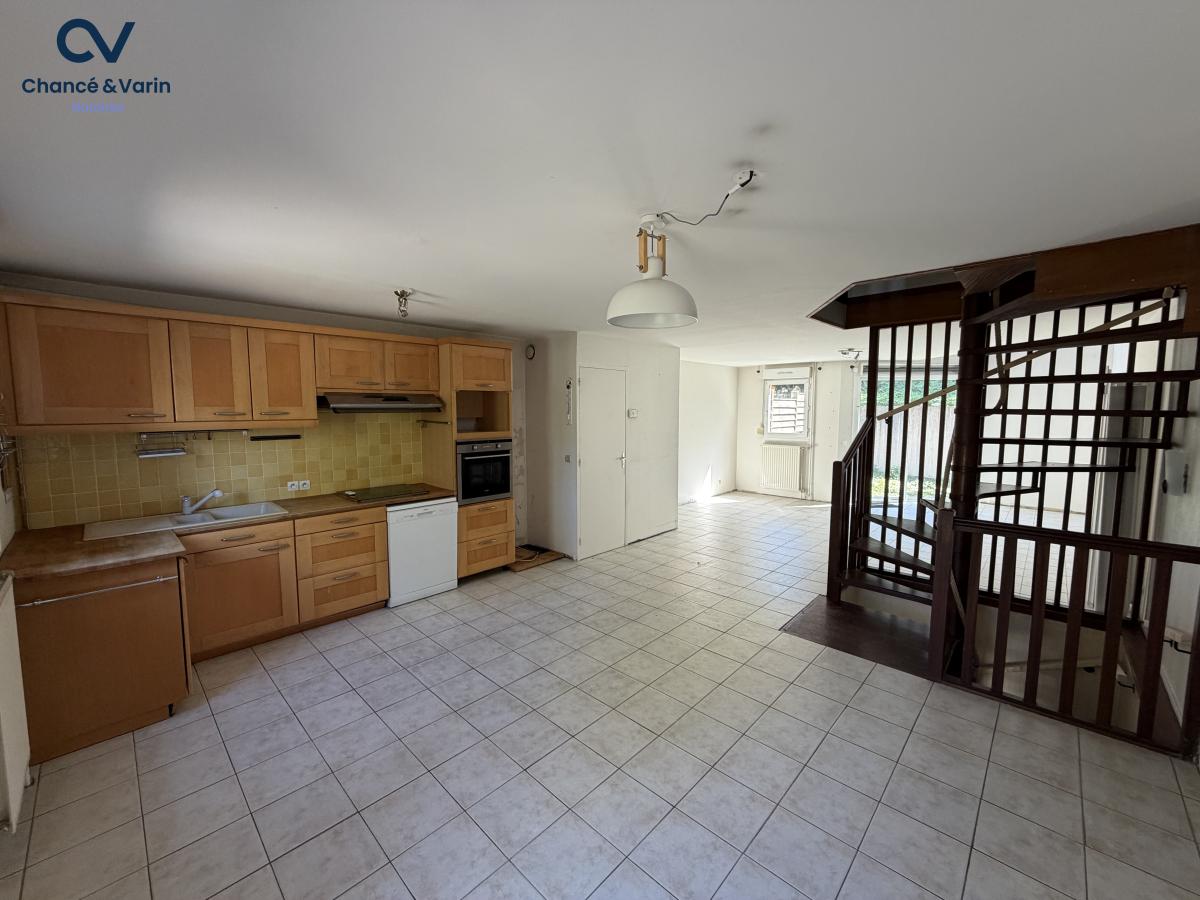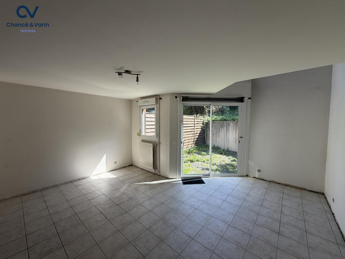 Le premier étage est dédié à la pièce de vie. Il se compose d’un séjour avec cuisine ouverte, offrant un espace fonctionnel et lumineux. Des toilettes indépendantes sont également présentes à ce niveau. Dans le prolongement, un accès direct permet de rejoindre la cour/jardin située à l’arrière de la maison, apportant un espace extérieur appréciable.