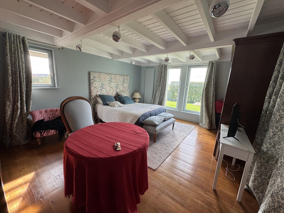 A l'étage: palier, grande chambre avec salle d'eau et wc, deux autres chambres et salle d'eau avec wc.