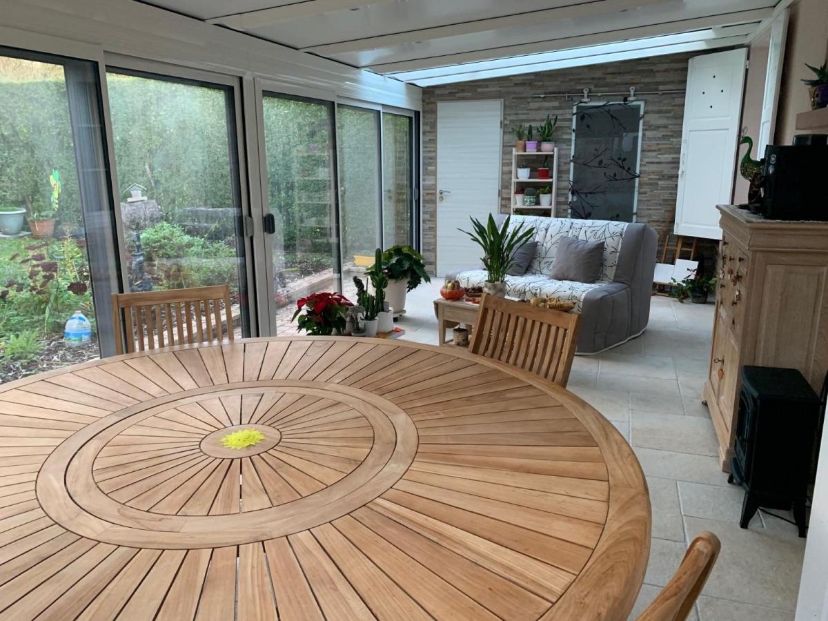 LISIEUX Vente de la NUE-PROPRIETE d'une maison de plain-pied, comprenant: Entrée, séjour-salon, cuisine, véranda (neuve), 2 chambres, salle de bains, salle d'eau, wc. Garage. Terrain plat de 597m² Femme née en 1951