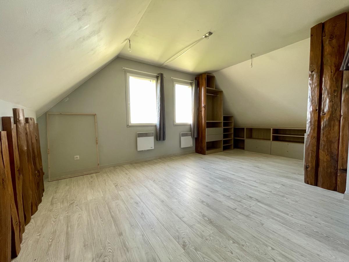 A l'étage pallier desservant une belle chambre de 15 m² , deux petites chambres, une salle de bains et wc .